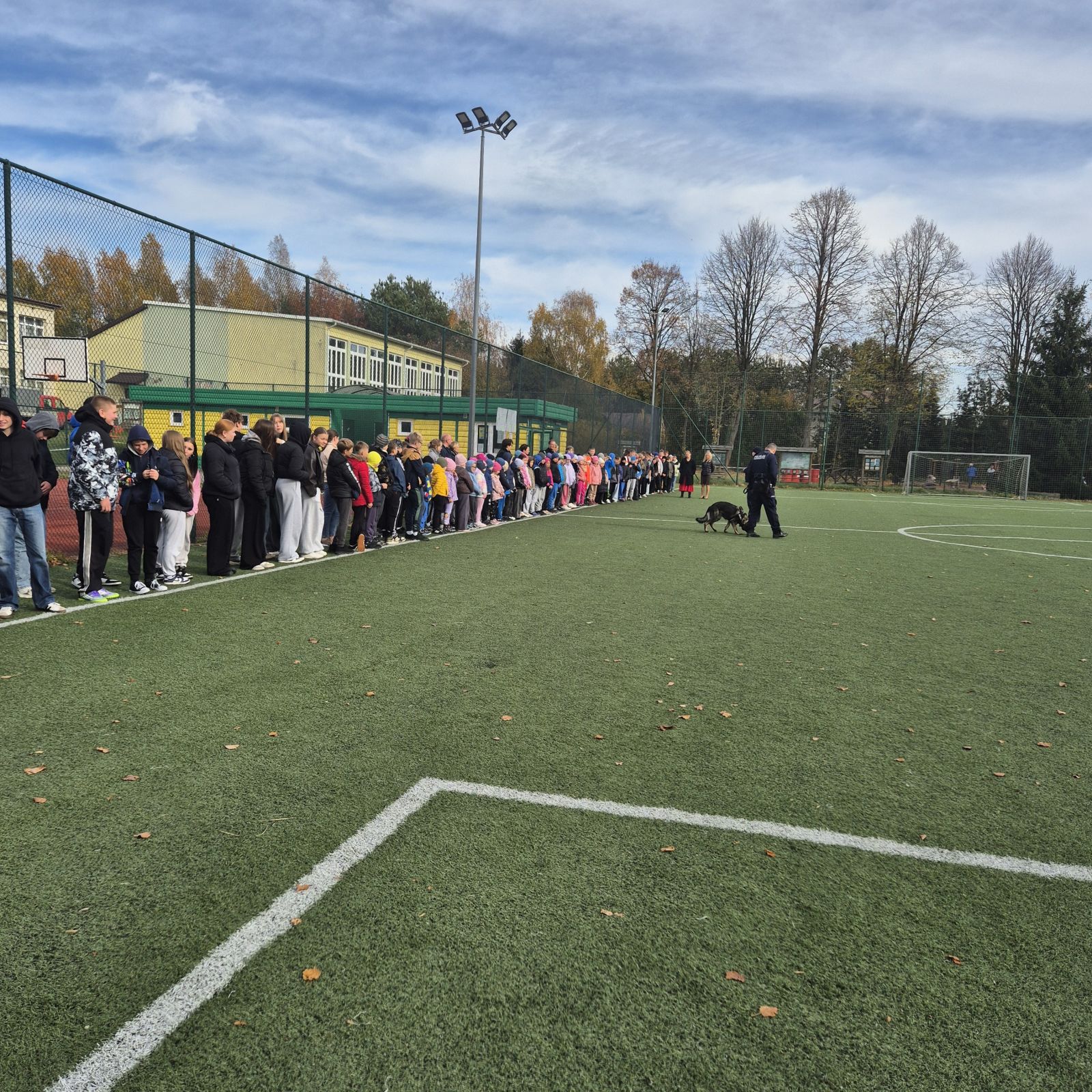 Dnia 30 października 2025r. dla uczniów z naszej szkoły zorganizowane zostało spotkanie z policjantami i psem policyjnym.