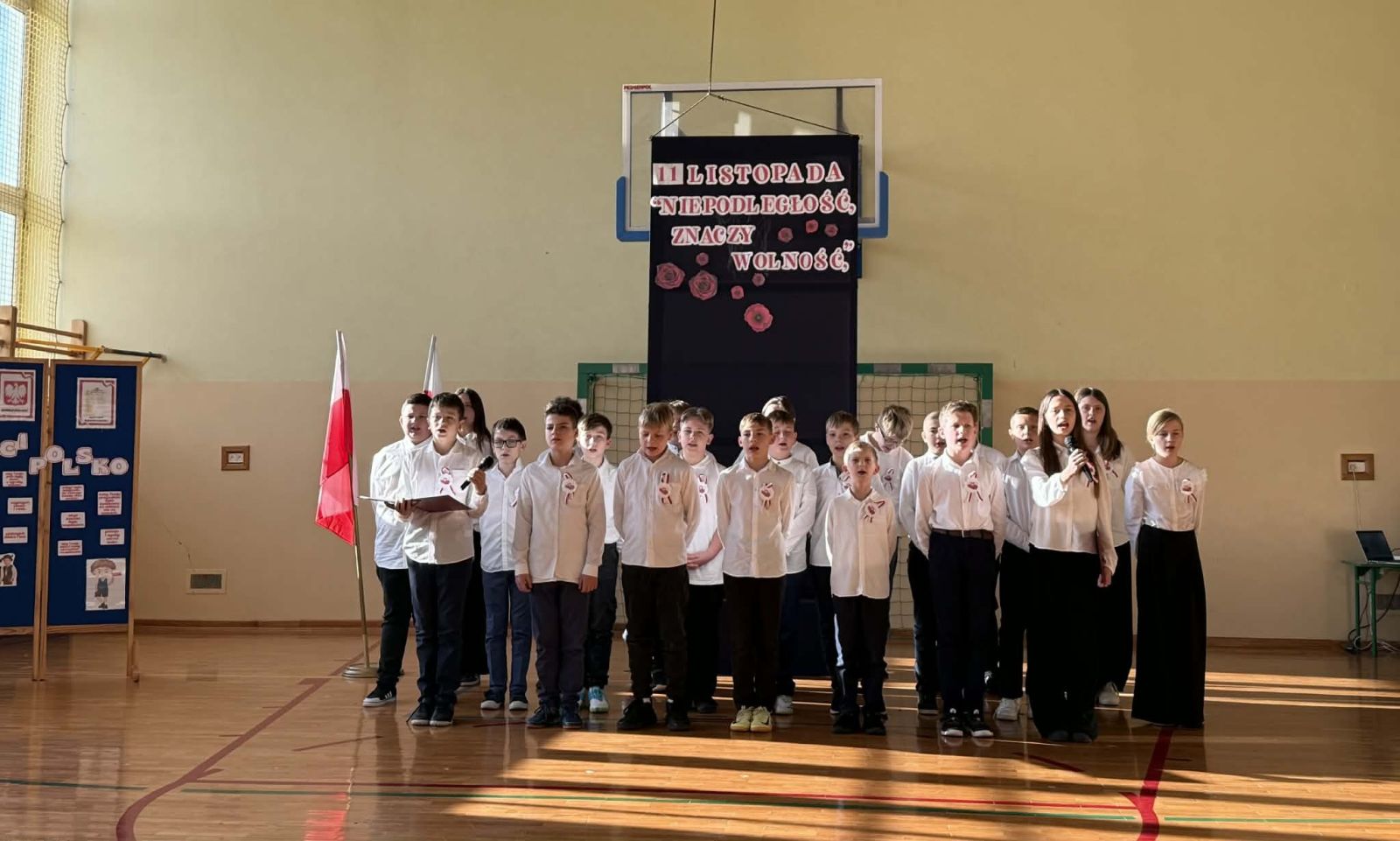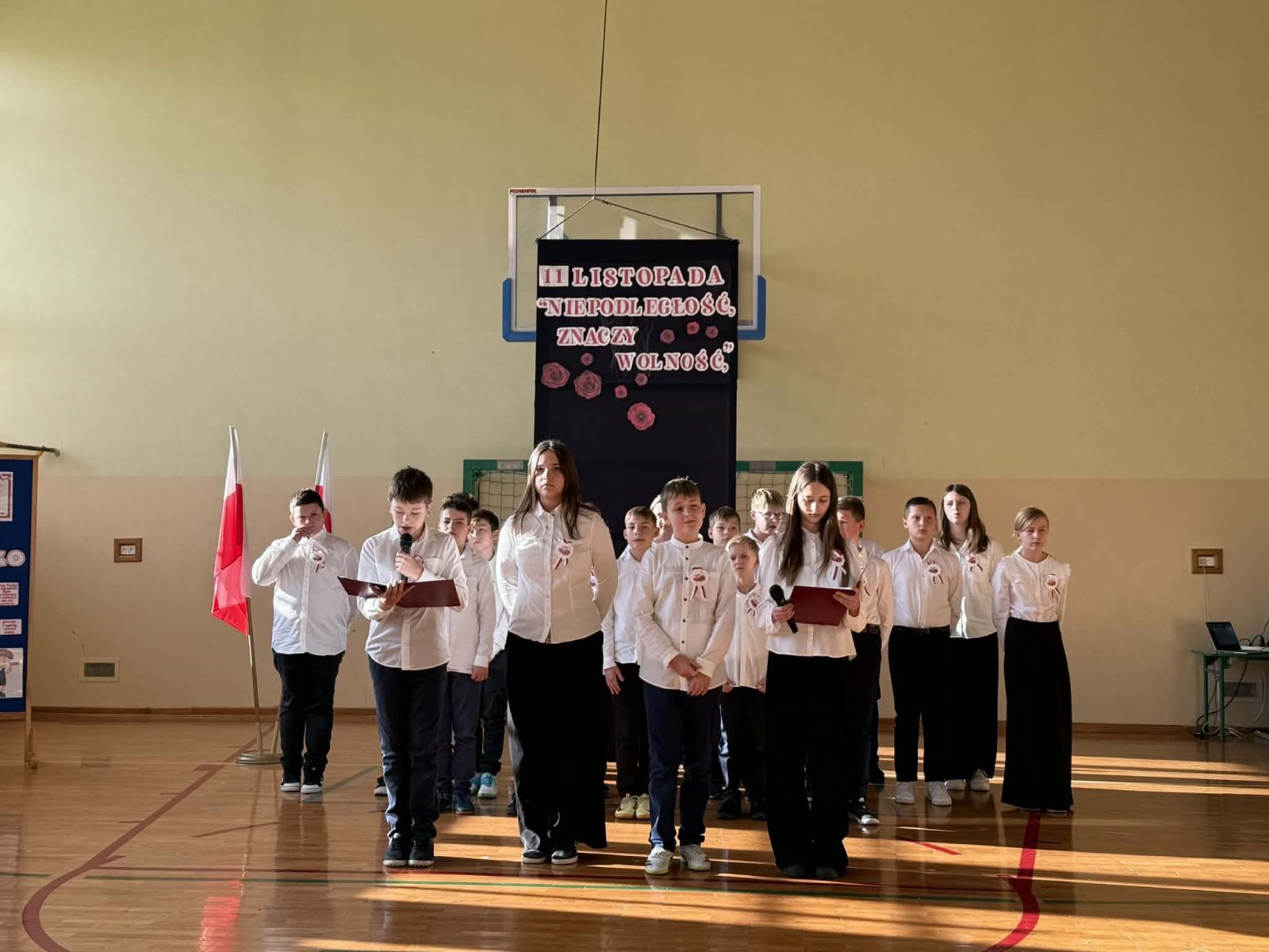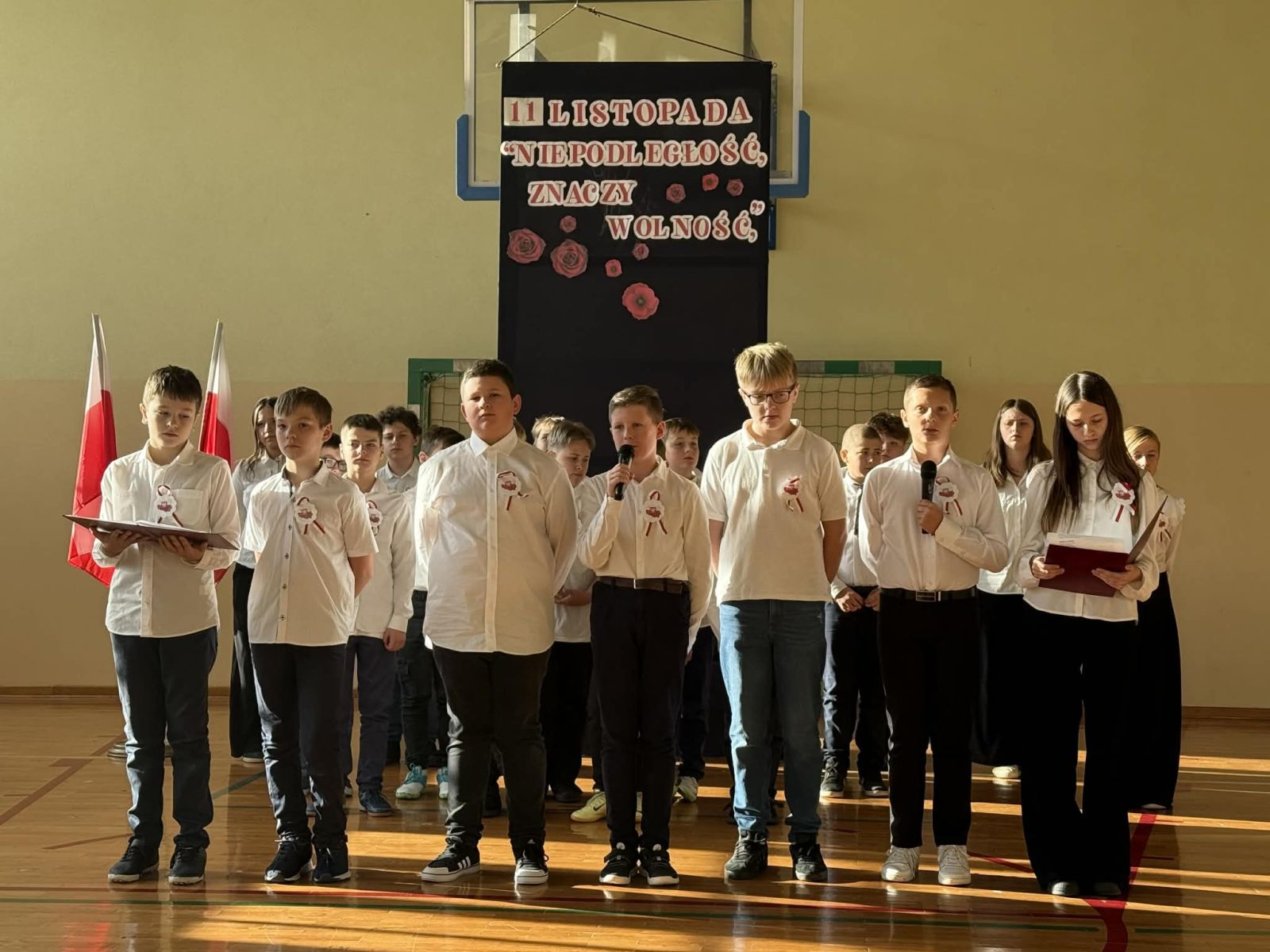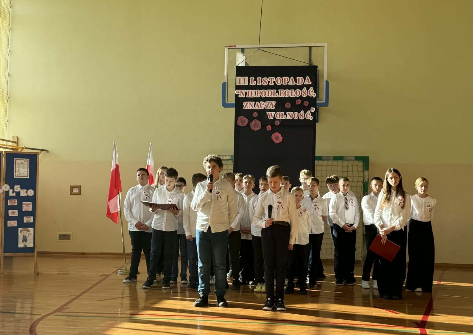 Święto Niepodległości jest najważniejszym polskim świętem narodowym. Co roku 11 listopada oddajemy cześć Polakom, którzy dzięki patriotyzmowi i bohaterstwu wywalczyli naszą wolność. 13 listopada 2025r. uczniowie oraz nauczyciele przyszli do szkoły ubrani na galowo. Na sali gimnastycznej odbyła się uroczysta akademia z udziałem pocztu sztandarowego przygotowana przez uczniów klasy V i VI pod kierunkiem p. Joanny Baran, p. Moniki Baran i p. Dominiki Masny. Z okazji 107 rocznicy odzyskania niepodległości przez Polskę uczniowie zaprezentowali piękny program artystyczny, przypominający nam o drodze Polaków do wolności, o bohaterstwie i miłości do Ojczyzny. Nie zabrakło wierszy, pieśni patriotycznych i chwil wspólnej refleksji. Uroczystość ta nie tylko przypomniała o doniosłych wydarzeniach sprzed ponad wieku, ale także podkreśliła, jak ważne jest pielęgnowanie patriotyzmu, troska o przyszłość naszej Ojczyzny i poczucie dumy z przynależności do Narodu Polskiego.
