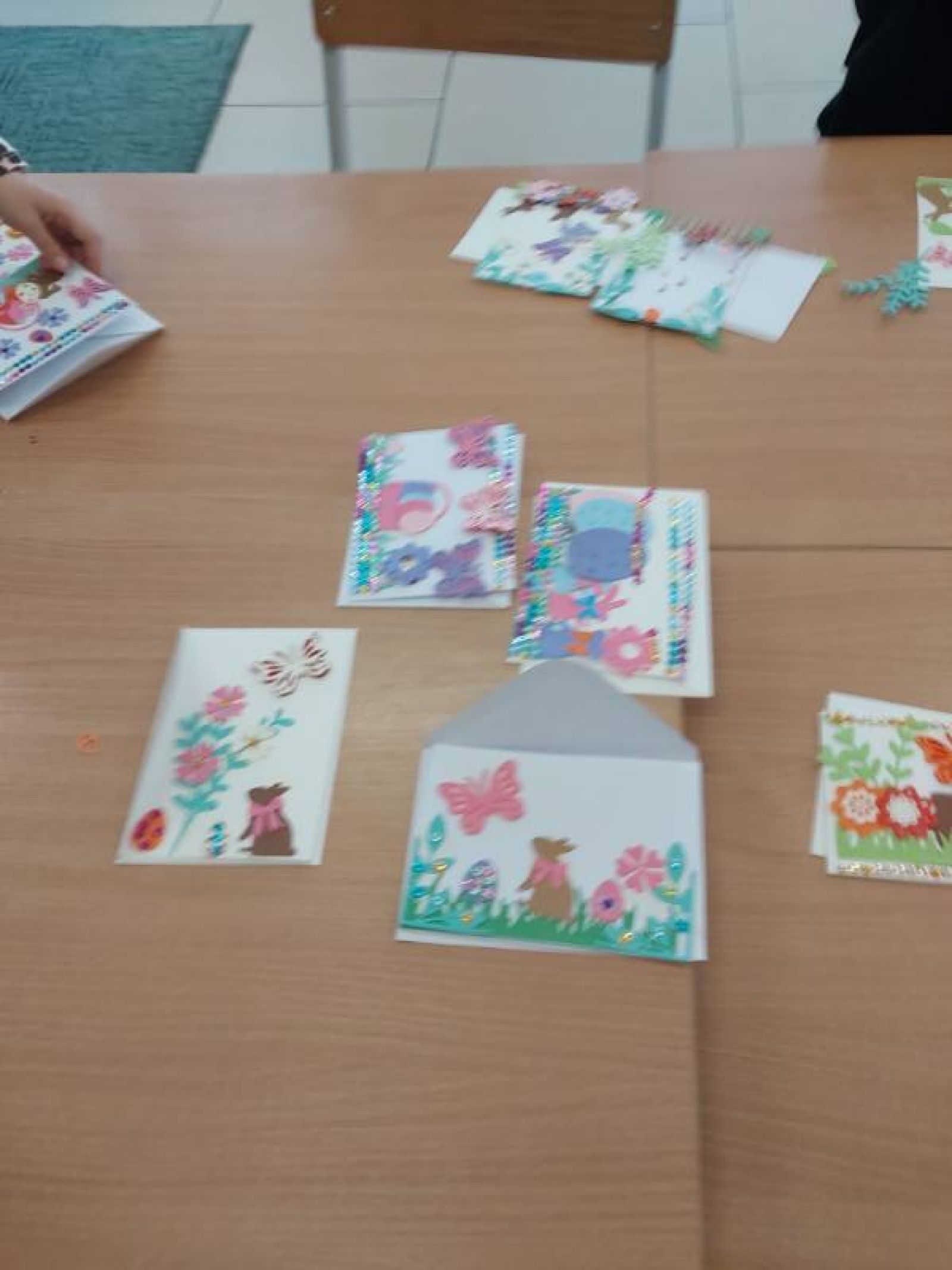 • Wykonane kartki przez dzieci.