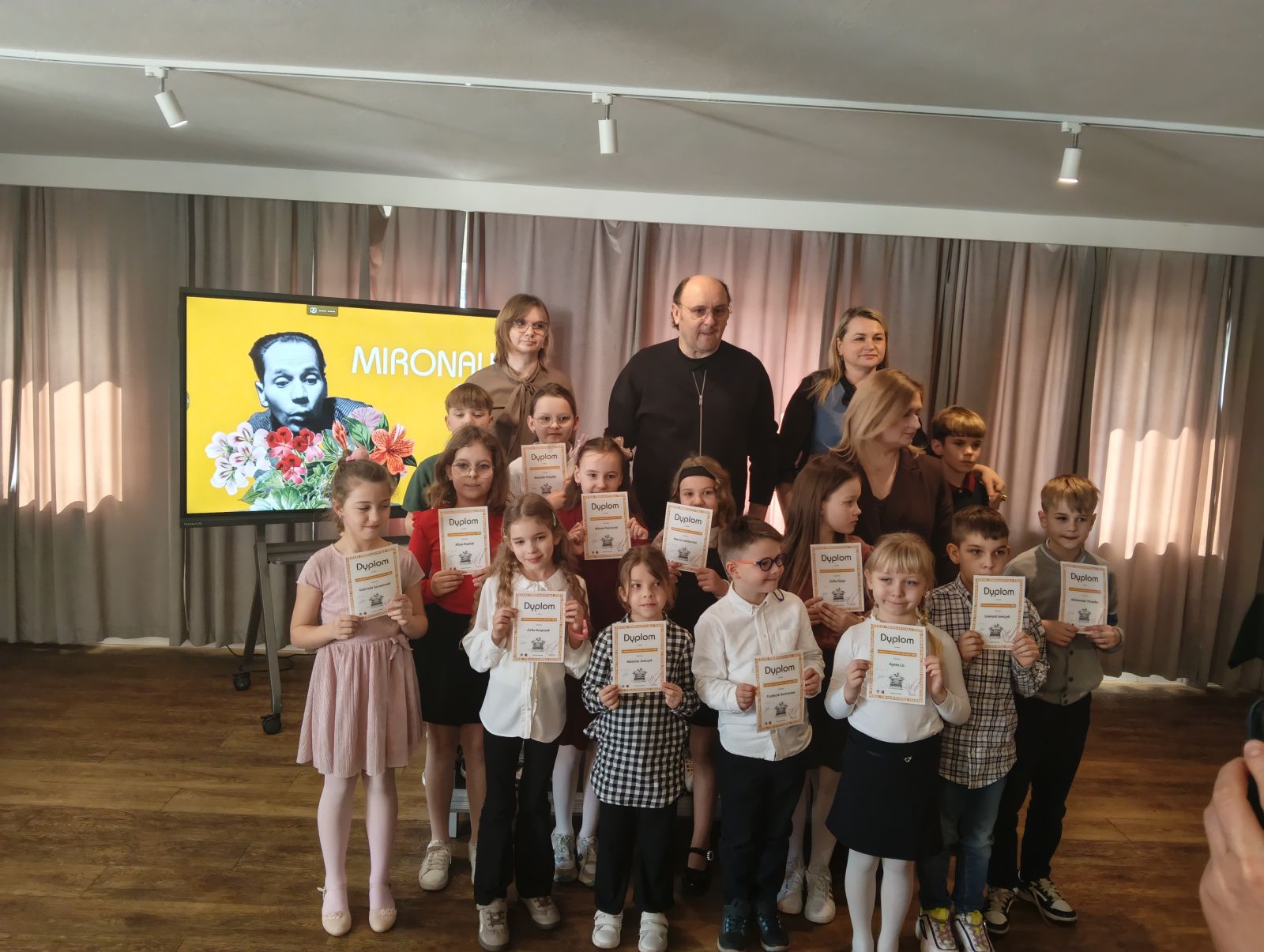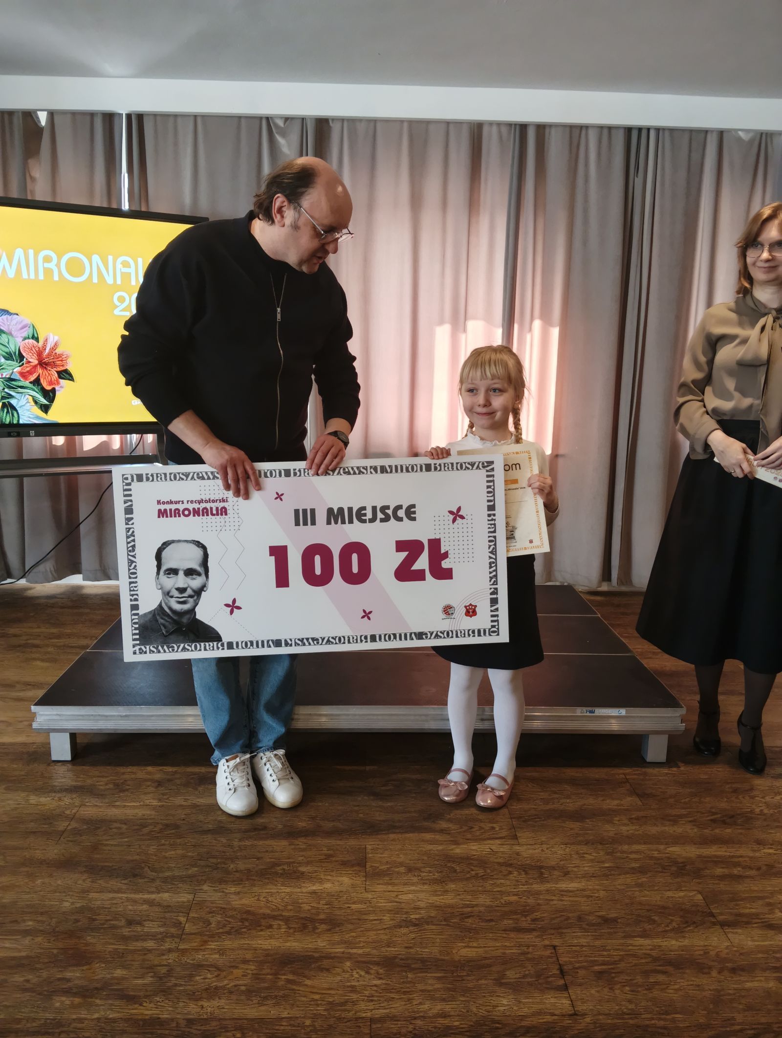19.03.2026 sześć uczennic naszej szkoły wzięło udział w konkursie recytatorskim „Mironalia”, poświęconym twórczości Mirona Białoszewskiego. Uczestnicy zaprezentowali wybrane utwory poety, wykazując się wrażliwością interpretacyjną oraz dużym zaangażowaniem. Z dumą informujemy, że nasi uczniowie zdobyli III miejsce oraz dwa wyróżnienia. Udział w konkursie był dla nich cennym doświadczeniem i okazją do rozwijania umiejętności artystycznych.